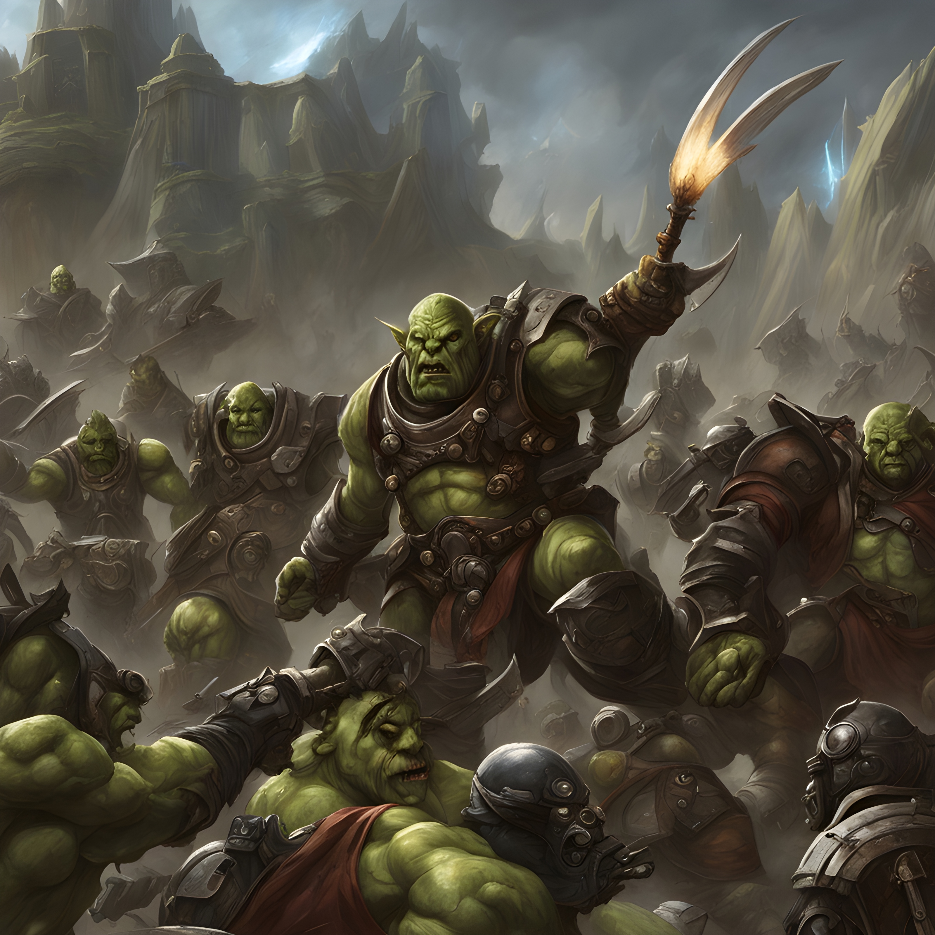 The Orcs, towering and savage with bioluminescent exoskeletons, advanced relentlessly.