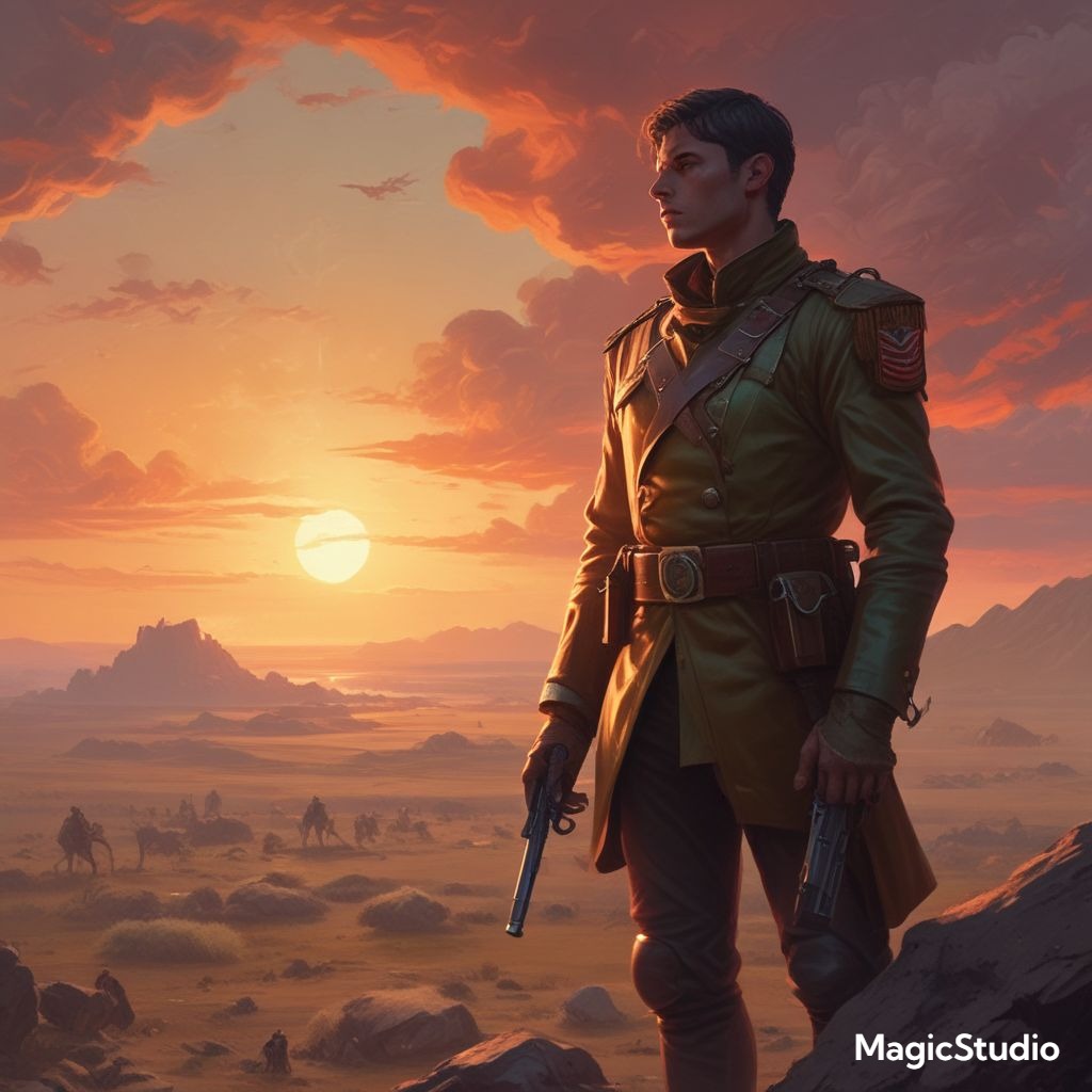 I stare out into the battlefield as the sun sets on a war-torn planet. We’ve won, but at great cost. My thoughts drift to my family, whom I lost so long ago. The Orcs took everything from me, but we recovered it today.