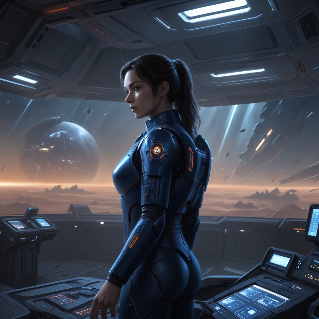 I stumbled out of the pod, my feet unsteady on the cold metal floor. A holographic interface blinked to life beside me, projecting urgent data about our current predicament. The ship's AI, Aria, spoke in a calm but insistent tone, "Rytorin, you must reach the command center. The situation is critical."