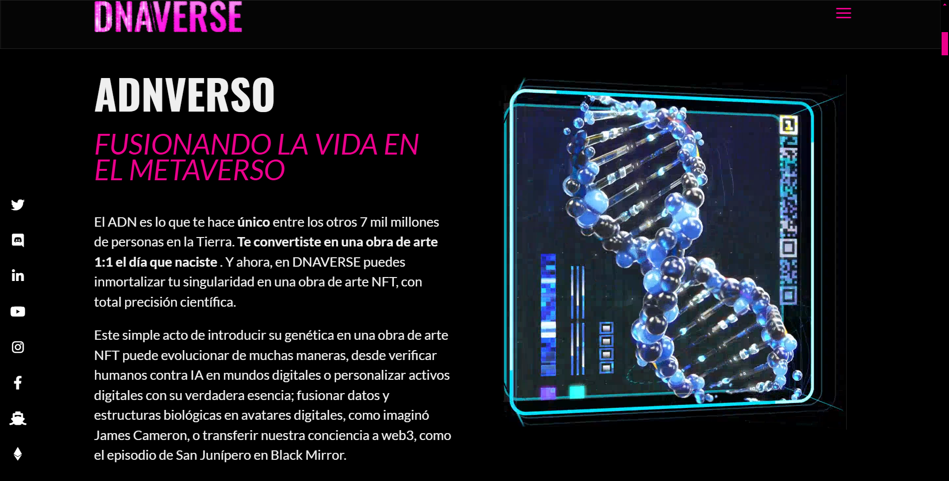 Actualmente, el ecosistema Web3 está revolucionando la forma en que concebimos y practicamos tanto la ciencia como el arte. Dentro de esta transformación, la intersección entre ambas áreas emerge como un campo prometedor para la creatividad, la innovación y la divulgación científica. Comunidades como DNAverse están constuyendo este movimiento al explorar nuevas formas de integrar el arte digital con los avances científicos, especialmente a través de la creación de NFTs (Tokens No Fungibles) personalizados que no solo representan secuencias de ADN, sino que también capturan la esencia misma de la exploración biológica.