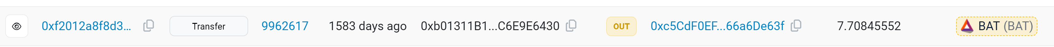 Aquí les muestro una transacción real de unos BATs (Basic Attention Token) que recibí, estos sí son reales