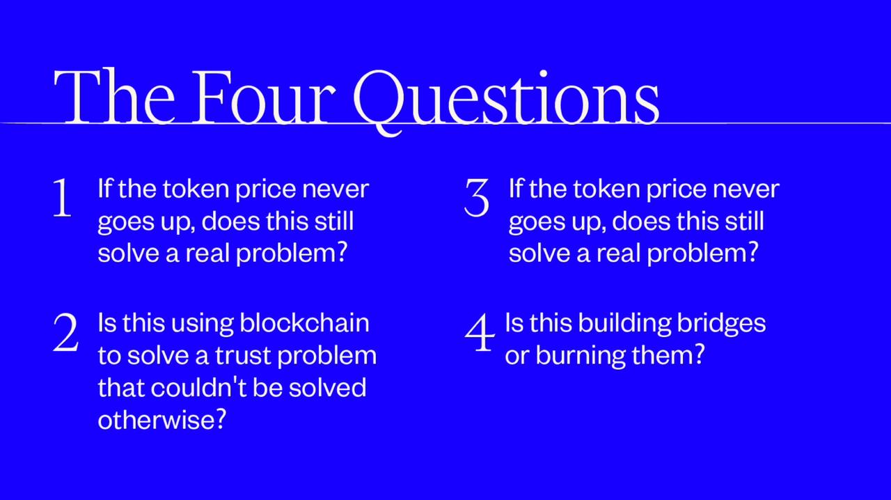 As a VC, my job isn't primarily to time market cycles or predict the next narrative shift. It's to find founders building businesses that would be impossible without blockchain but create enduring value through market ups and downs.