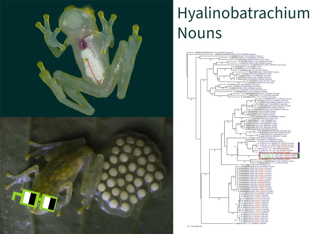Si unimos un animal de gran representación e importancia en los memes con la ciencia, sucede algo curioso, ¿sabías que existe un especie de rana cristal (ranas que su cuerpo es transparente y se ven sus órganos, cada día se descubren más en los andes) que lleva el nombre de nouns en honor a la comunidad? Hyalinobatrachium Nouns es el primer caso en cripto y ntfs donde, a cambio del nombre, se donaron fondos a la reserva EcoMinga Foundation para sus operaciones, la fundación Rainforest Trust para proteger bosques, y para publicar el descubrimiento y pagar la publicación de futuros.