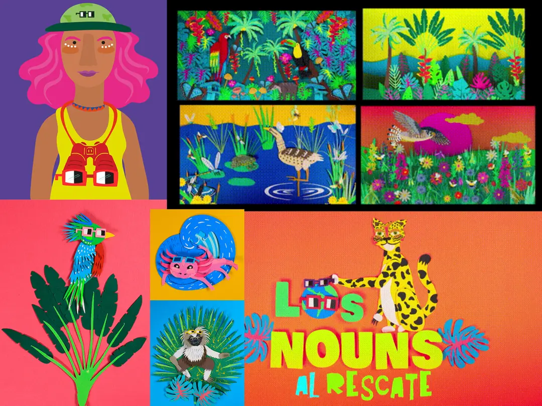 Seguramente has visto documentales de National Geographic o te has topado con algún programa o corto animado que nos ayuda a comprender la importancia de los animales y sus vidas en sus hábitats, lo que conocemos como divulgación en sus varias formas. Seguro no sabías que bajo nouns está en proceso un corto stop motion con un arte super colorida y creativa, donde tenemos una exploradora que conoce 6 nouns en sus hábitats y explica los riesgos en los que se encuentran, además de datos curiosos de ellos.