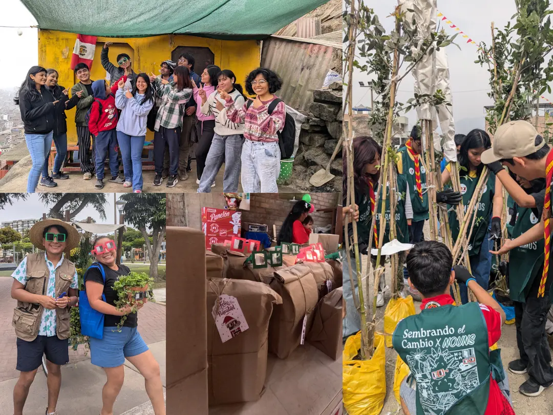 En este mundo también encontramos iniciativas de reforestación y de educación ambiental de diversos tamaños, destacando el ejemplo de cómo un influencer conocido como el chico de las plantas (ig) vió a nouns como una oportunidad de apoyarse para realizar 2 meses de actividades en Lima para rehabilitar áreas que necesitan reforestación, eventos navideños en comunidades, macetas con gafas nouns y más en su contenido en redes sociales (dime si no esta cool el diseño de los materiales que usó).