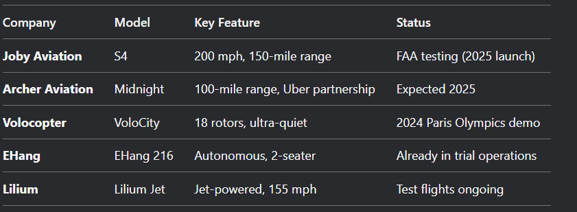 - Volocopter and Lilium Jet are targeting 2025-2027 launches.